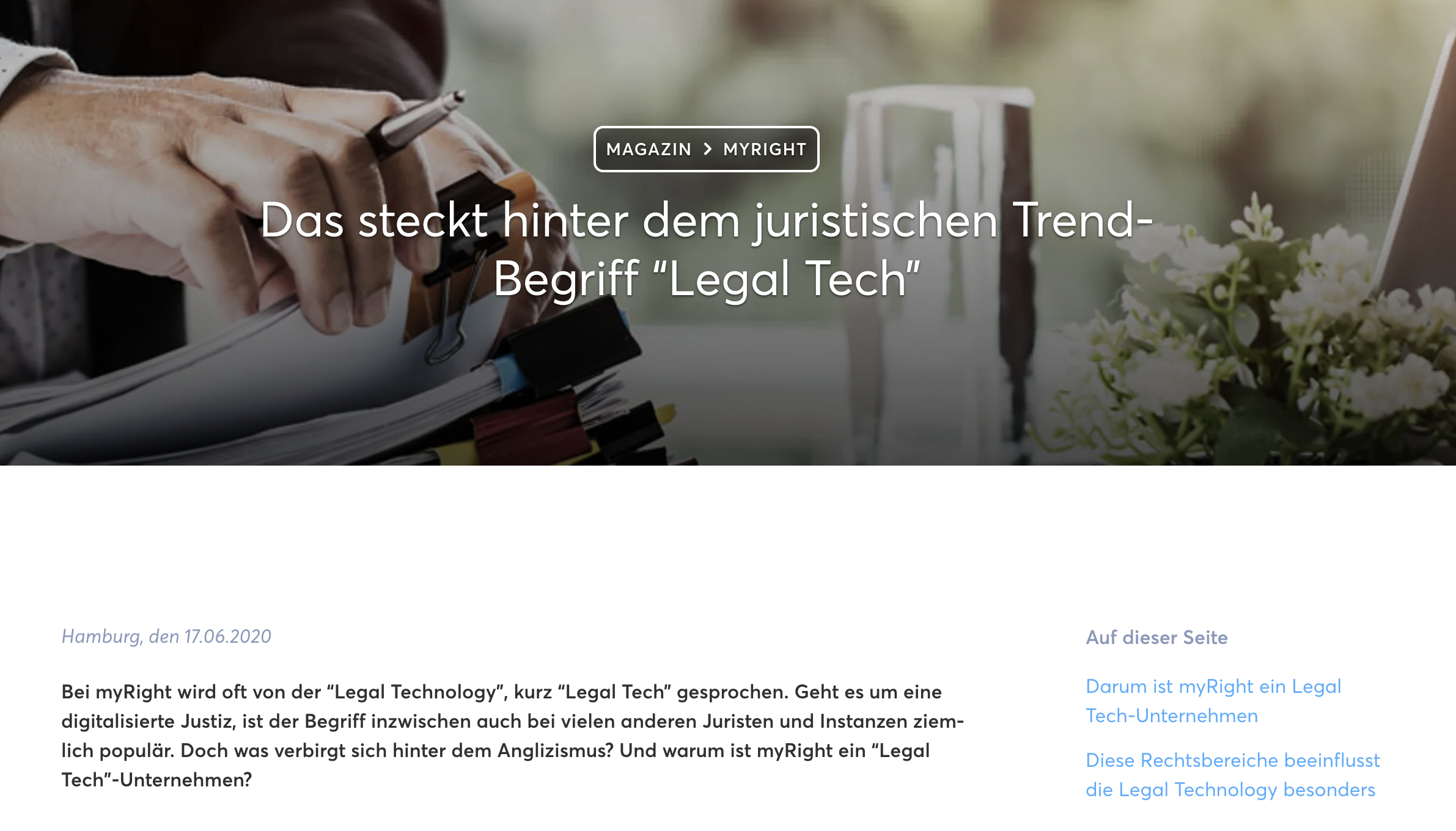 Mein Fokus beim myRight Magazin: informativer Content rund um den Verbraucherschutz und Projekte des auf den Verbraucherschutz spezialisierten Legal-Tech-Unternehmens.